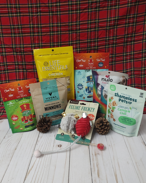 This festive assortment features some of the most loved cat treats on the market, beautifully displayed against a cozy holiday backdrop. Each treat offers something special for the season, from limited-edition flavors to high-quality ingredient blends perfect for picky eaters, sensitive tummies, or cats who simply deserve something extra during the holidays.