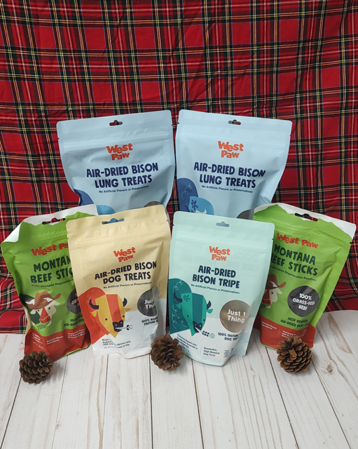 This hearty assortment showcases some of the highest-quality dog treats for the season, beautifully arranged against a warm holiday backdrop. Each option brings something unique to the table, from single-ingredient bison lung and tripe to Montana-sourced beef sticks crafted for dogs who crave real, nutrient-dense meat. Whether you’re shopping for a power chewer, a sensitive-stomach pup, or a dog who simply deserves something extra special, this curated collection delivers wholesome, protein-rich treats perfect for gifting all holiday long.