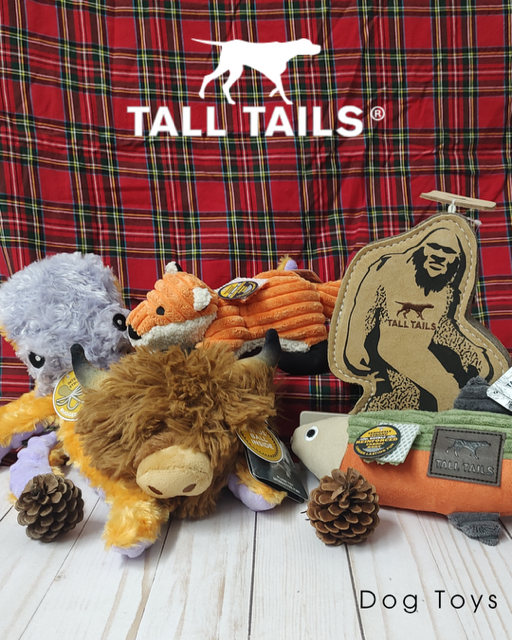This cozy assortment of Tall Tails dog toys features plush characters, soft textures, and durable designs made for snuggles and play. With whimsical creatures like foxes, yaks, and even a Bigfoot-inspired toy, this collection brings charm and comfort to dogs of all sizes. Perfect for pups who love squeaky fun, cuddly companions, or festive new toys for the holiday season.